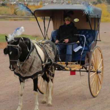 Beautiful Teal and Wood tone Gig for show or pleasure. Fits horses 15H - 16.2H Best for a single person.